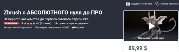 Денис Овсянников «Zbrush с абсолютного нуля до про» — Udemy