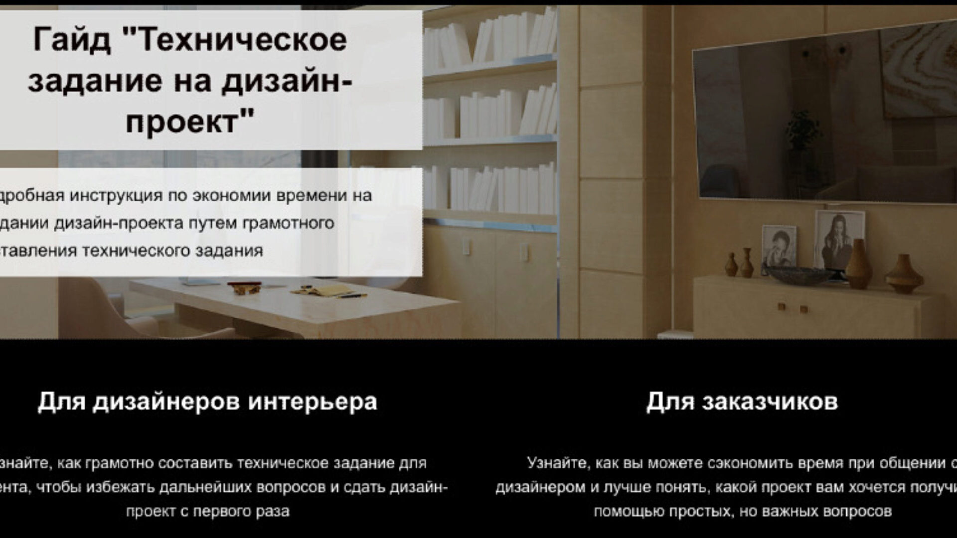Что в гайде: 82 страницы информации Как грамотно составить ТЗ на визуализацию Где искать визуализатора? Как организовать работу с визуализатором? Примеры ТЗ разных помещений для визулизатора Корректировки для визуализаций Утверждение визуализаций