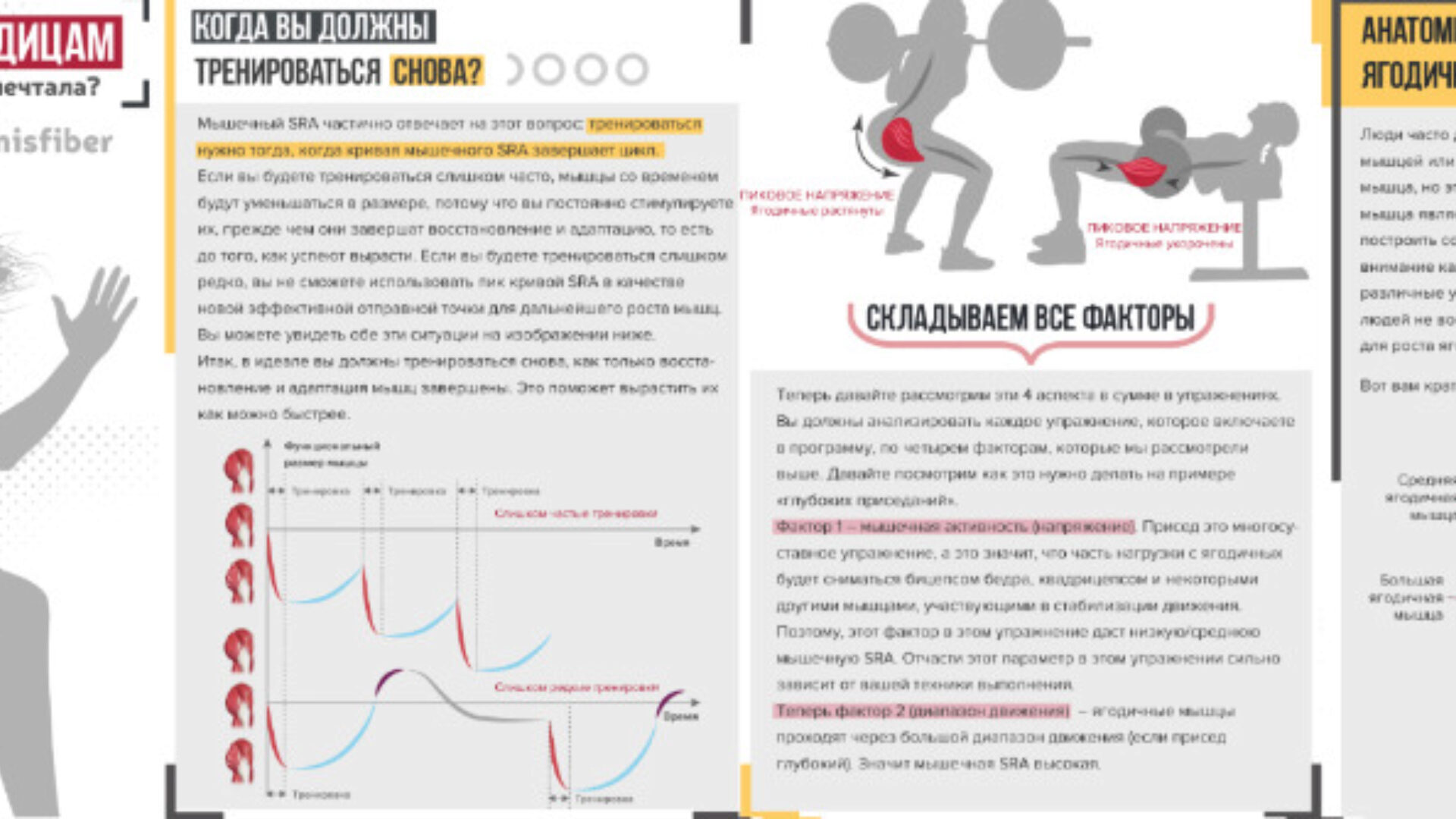 В гайде мы коснемся каждого тренировочного фактора (более 25), которые могут влиять на рост ягодичных - начиная с анатомии и выбора упражнений, заканчивая числом повторений и скоростью движений. Мы также разберем как одни тренировочные переменные зависят и влияют на другие и что это значит для нас. Ну и конечно вы поймете, как выстроить тренировочный план учитывая все эти факторы.