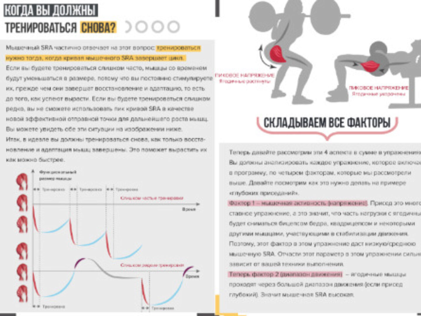 -«Три подхода этого упражнения, четыре того, два раза на недельке - вот жопка и готова» - здесь этого нет! В гайде мы разбираем тренировочные принципы, эффективность которых доказана исследованиями. И на их основе выстраиваем тренировочный план под Вас. Без шаблонов!