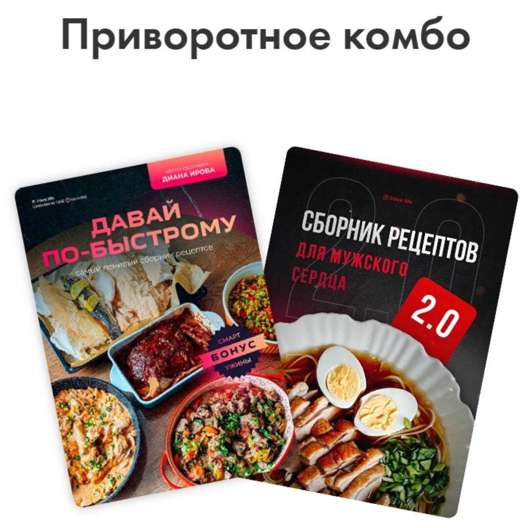 Сборники рецептов для мужского сердца от Дианы Ировой ЛЮБОВЬ С ПЕРВОГО КУСОЧКА Если вы хоть раз задавались вопросами: «что приготовить любимому?» и «где найти проверенный рецепт?», то сборники «Для мужского сердца» я создавала именно для вас! Это рецепты, которые покоряют сердца - проверено более