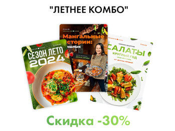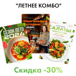 Комбо состоит из 3х сборников: МЕНЮ «СЕЗОН ЛЕТО 2024» всего 32 рецепта 5 идей заморозки: лазанья, куриные рулетики с сыром, голубцы, мини котлеты с овощами, лодочки с ветчиной и сыром АНТИКРИЗИСНОЕ МЕНЮ 3.0 всего 30 рецептов 5 идей заморозки: мясные ватрушки, мясные рулетики, плесковица, медальоные