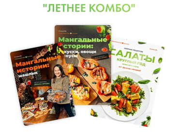 Что вы получите в каждом сборнике: 20 видео-рецептов в сборнике «Мангальные истории: шашлык» МЕНЮ «СЕЗОН ЛЕТО 2024»всего 32 рецепта 5 идей заморозки: лазанья, куриные рулетики с сыром, голубцы, мини котлеты с овощами, лодочки с ветчиной и сыром «Салаты. Сезон лето-осень» - это сборник для тех, кто