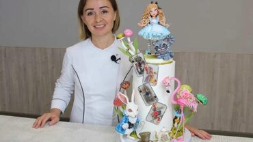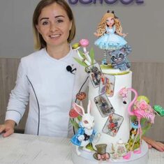 Теоретическая часть: - Теория - Рецепты - Материалы Видео уроки: - Приготовление начинки «Марципановый бисквит, пряная вишня и базовый крем» - Приготовление «японского бисквита» - Обтяжка торта мастикой - Роспись торта пищевыми красками по мастике - Лепка фигурки кролика из сказки «Алиса в стране
