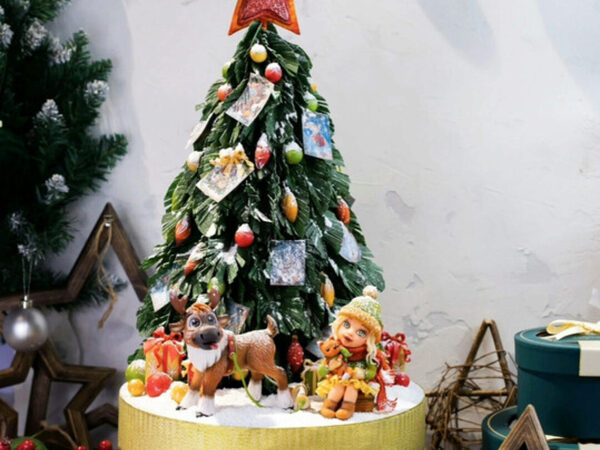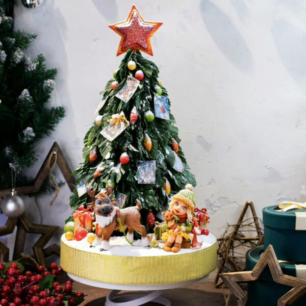 7. Лепку мелкого декора в виде игрушек, елочек, подарков (который можно заготовить заранее и использовать на готовый торт)