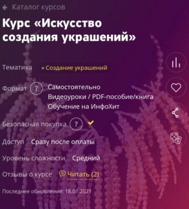 Отзывы о курсе «Искусство создания украшений» от Динары Перовой