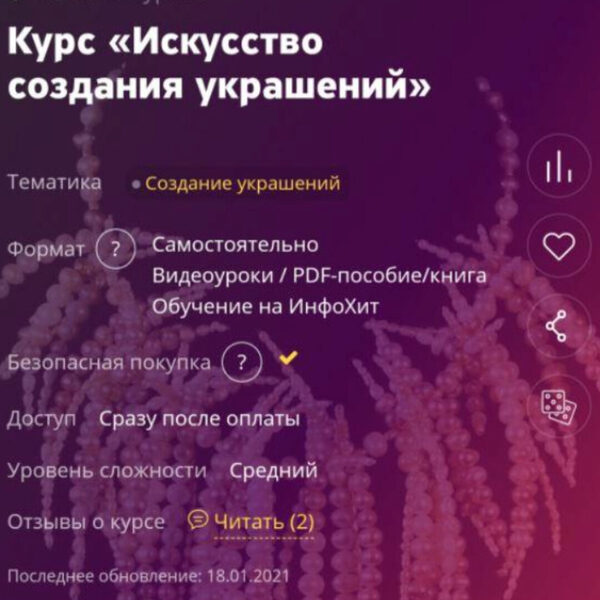 Если ты давно хотела научиться создавать украшения своими руками или открыть свой магазин, тебе на мой курс После моего курса ты научишься создавать различные украшения не только для себя, но и на продажу . Что входит в курс: 6 подробных видео-уроков в записи по созданию украшений и работы с