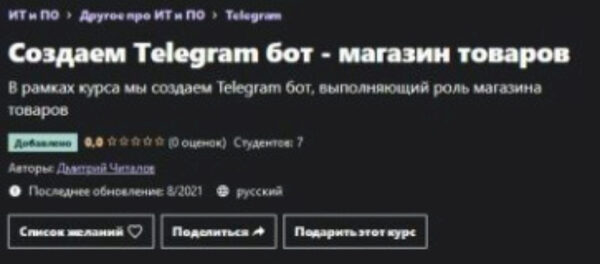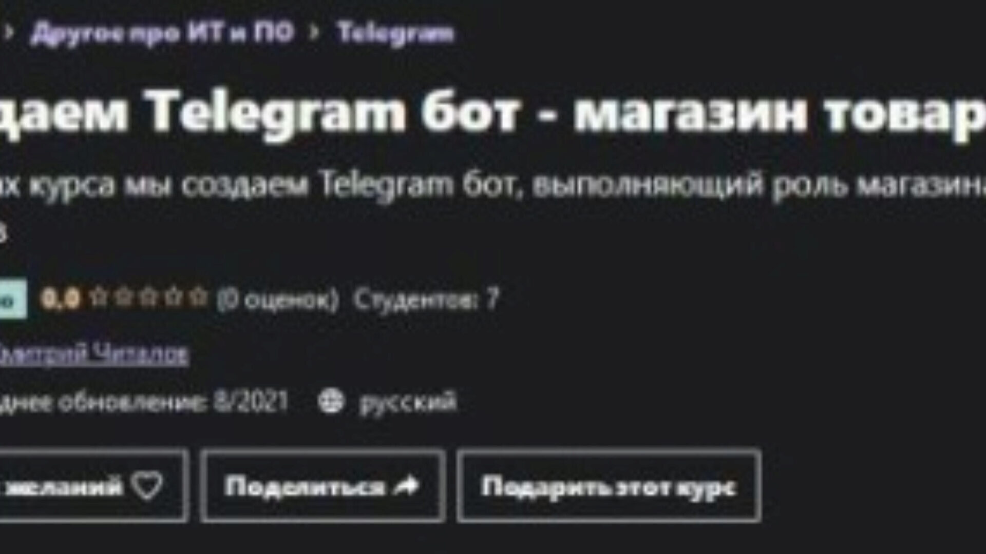 Дмитрий Читалов «Создаем Telegram бот - магазин товаров» — Udemy