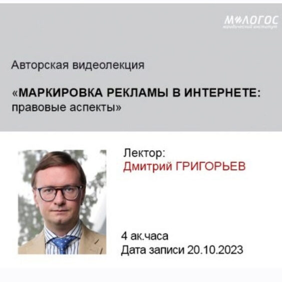 Дмитрий Григорьев «Маркировка рекламы в интернете: правовые аспекты» — Млогос