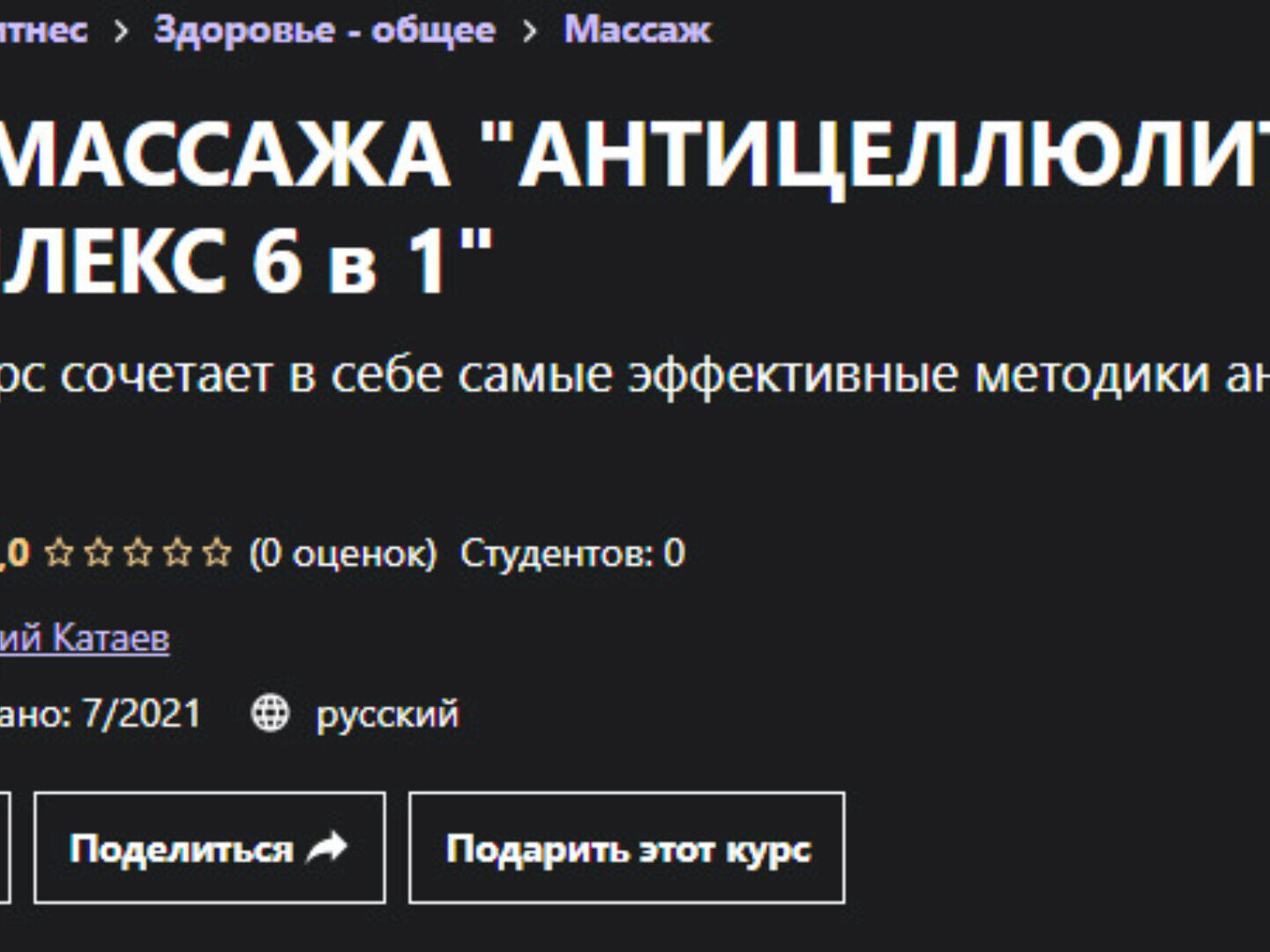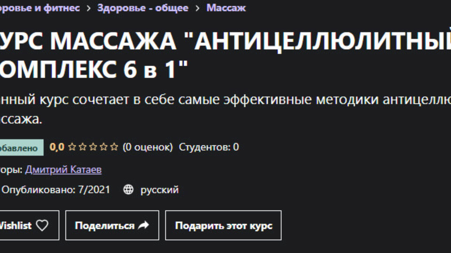 Дмитрий Катаев «Курс массажа Антицеллюлитный комплекс 6 в 1» — Udemy