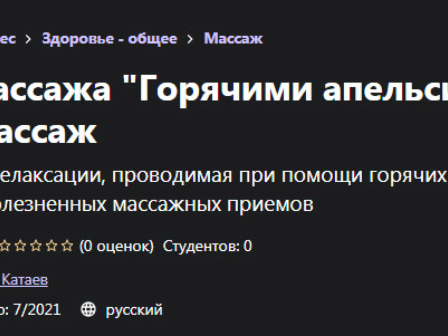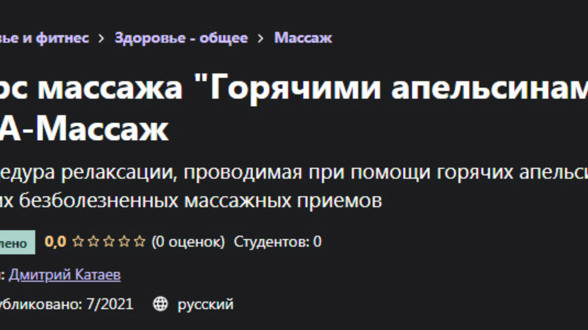 Дмитрий Катаев Курс массажа «Горячими апельсинами» СПА-Массаж — Udemy