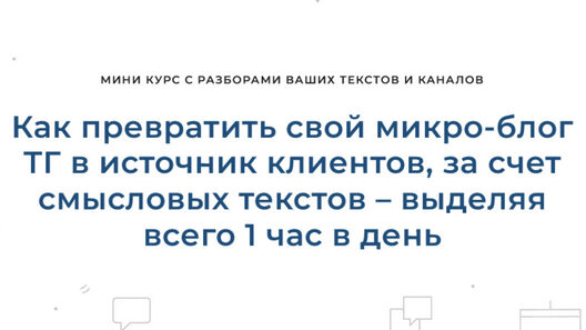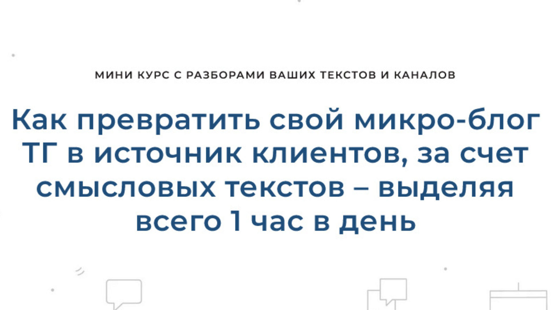 Дмитрий Коренко «Как превратить свой микро-блог ТГ в источник клиентов, за счет смысловых текстов – выделяя всего 1 час в день»