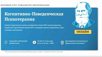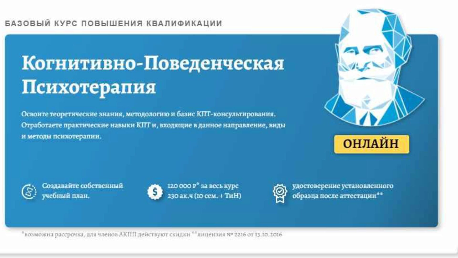 Часть 1. Основы КПТ. Теория и практика.Октябрь 2020. Цель семинара — двухдневный онлайн семинар поможет понять особенности направления работы специалиста, освоить принципы взаимодействия в парадигме КПТ, разобрать различные методы работы с клиентами, сориентироваться в современных течениях