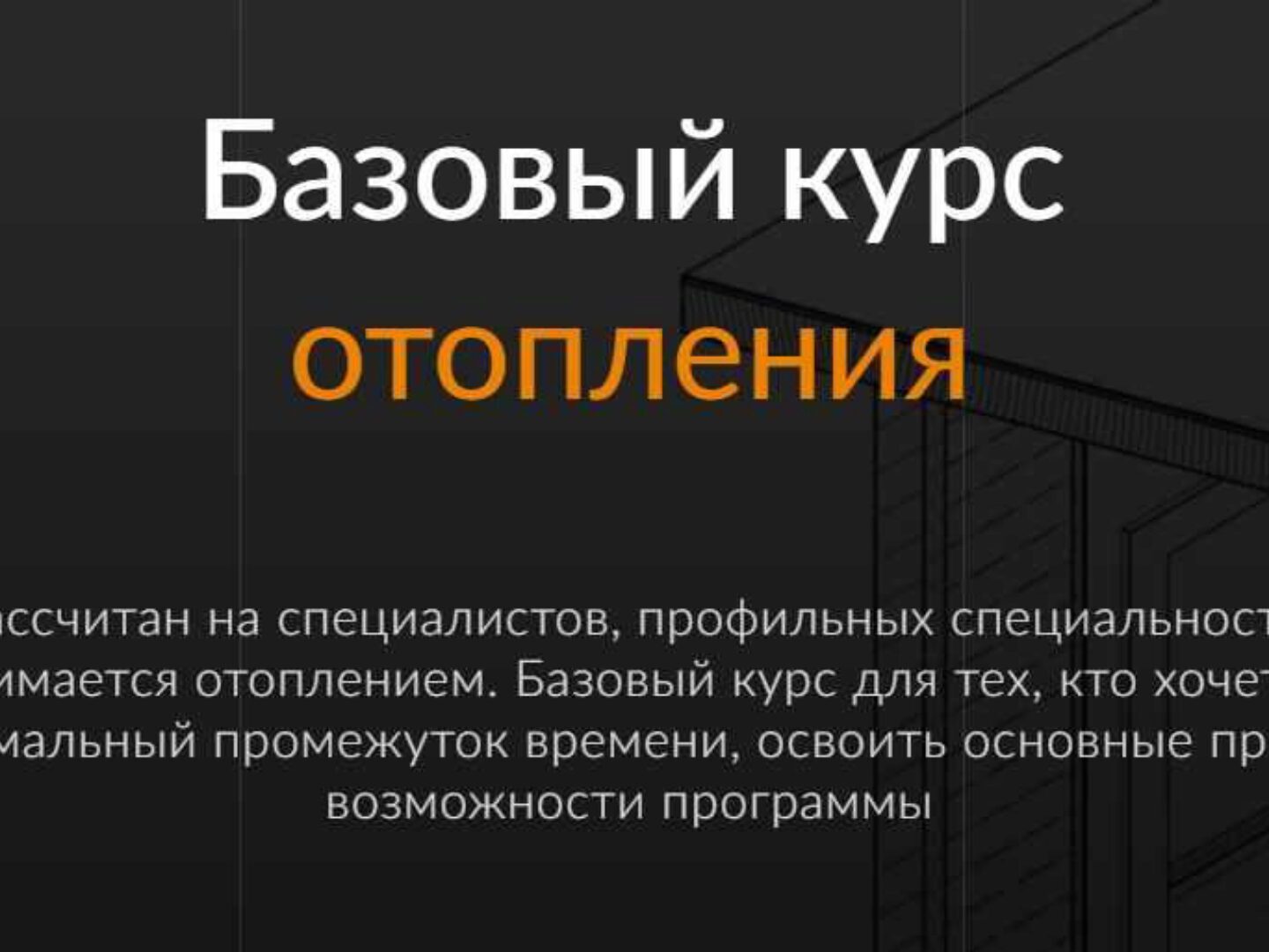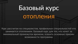 Курс рассчитан на специалистов, профильных специальностей кто занимается отоплением. Базовый курс для тех, кто хочет за минимальный промежуток времени, освоить основные приемы возможности программы