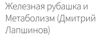 Дмитрий Лапшинов «Железная рубашка и Метаболизм»