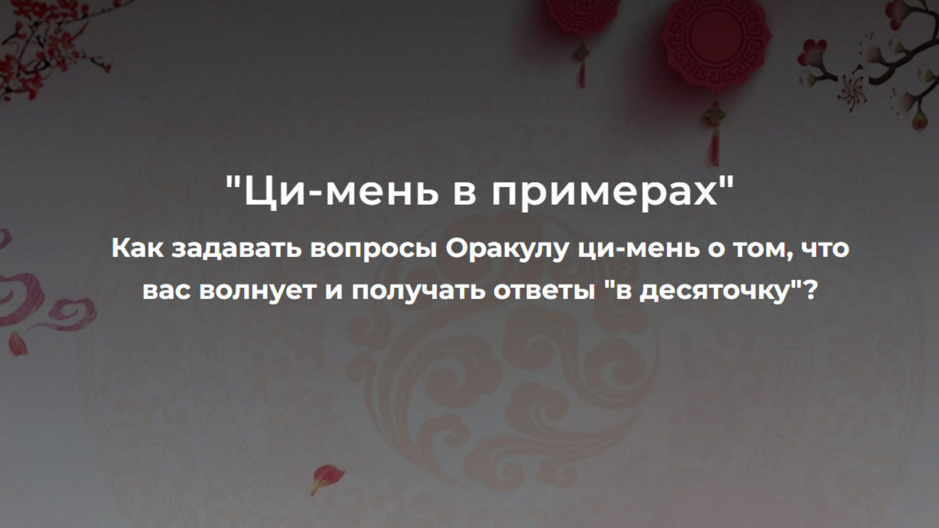 - Пошаговая методика от возникновения вопроса до составления и интерпретации каждого (!) элемента расклада Оракула ци-мень.