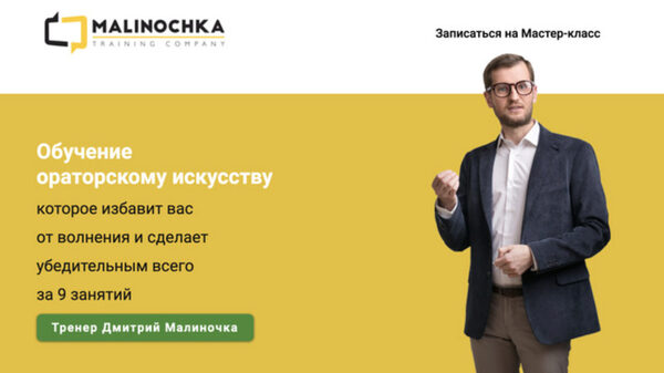 тренер по ораторскому искусству, актер и автор тренингов по коммуникации, руководитель Malinochka Training Company.