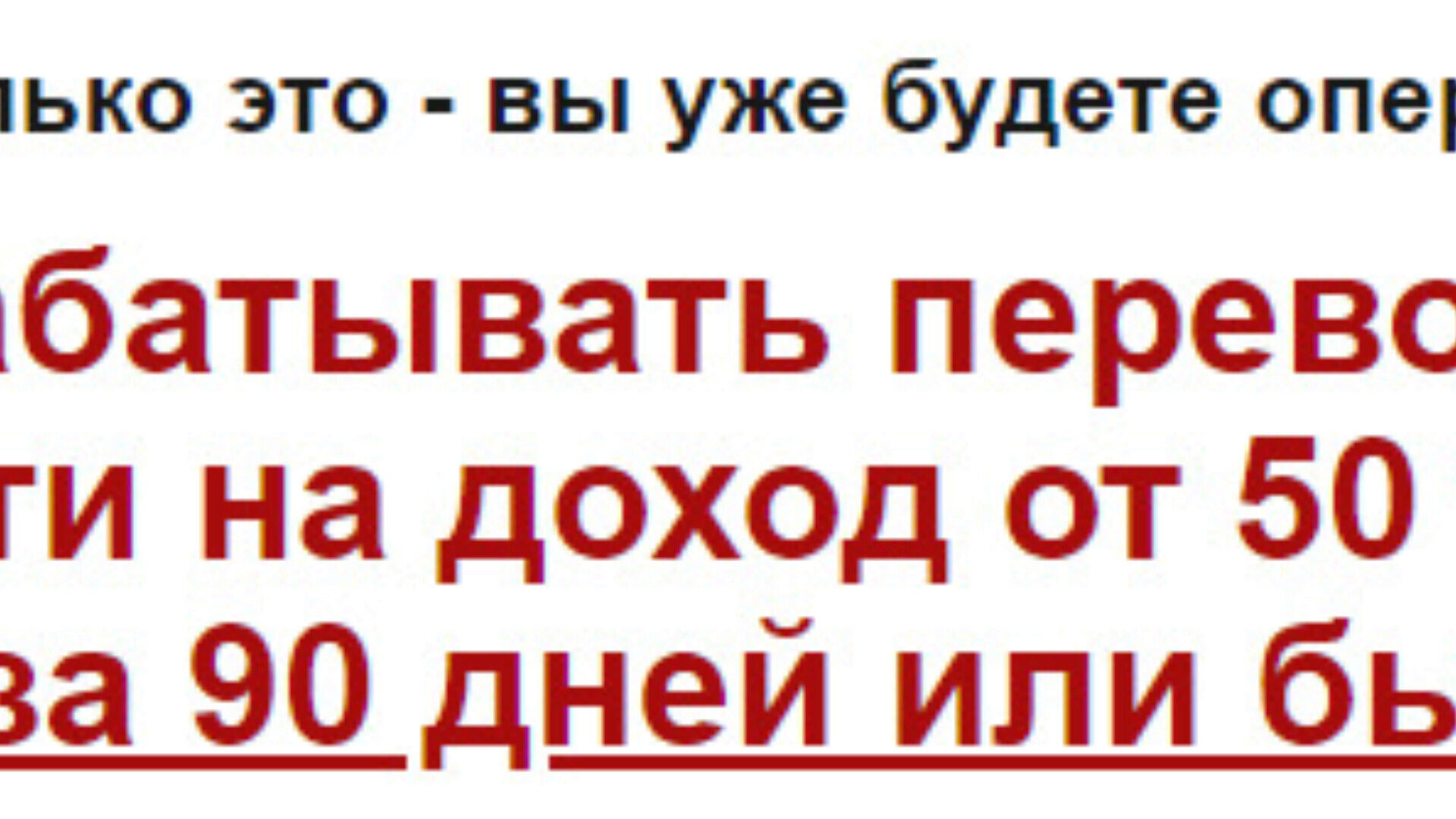 Узнайте, как начать зарабатывать переводами без опыта работы, и выйти на доход свыше 50 тысяч рублей в месяц за 90 дней или быстрее!