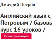 Знаменитый полиглот, создатель одной из самых эффективных систем обучения языкам Дмитрий Петров подготовил для вас авторский курс из 16 занятий, где вас ждут простые и понятные схемы и принципы изучения языка. Вы овладеете основами языка Шекспира и Диккенса, а также, возможно, впервые в жизни, получите удовольствие от изучения иностранного языка.