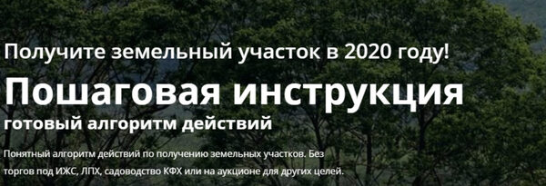 Пошаговая инструкция: Как получить земельный участок в 2017 году Реализовать мечту о земельном участке легче и быстрее с пошаговой инструкцией. Имея пошаговый алгоритм действий по получению земли без торгов, и готовые шаблоны документов вы узнаете: как застолбить земельный участок и пройти