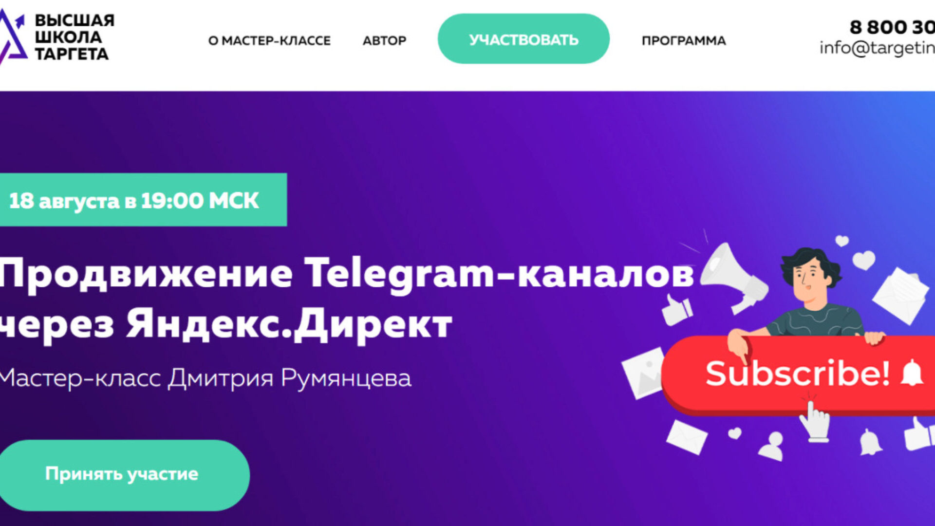 Если вы хотите научиться продвигать свой Telegram-канал, используя возможности рекламы в Яндексе, — приходите на мастер-класс.