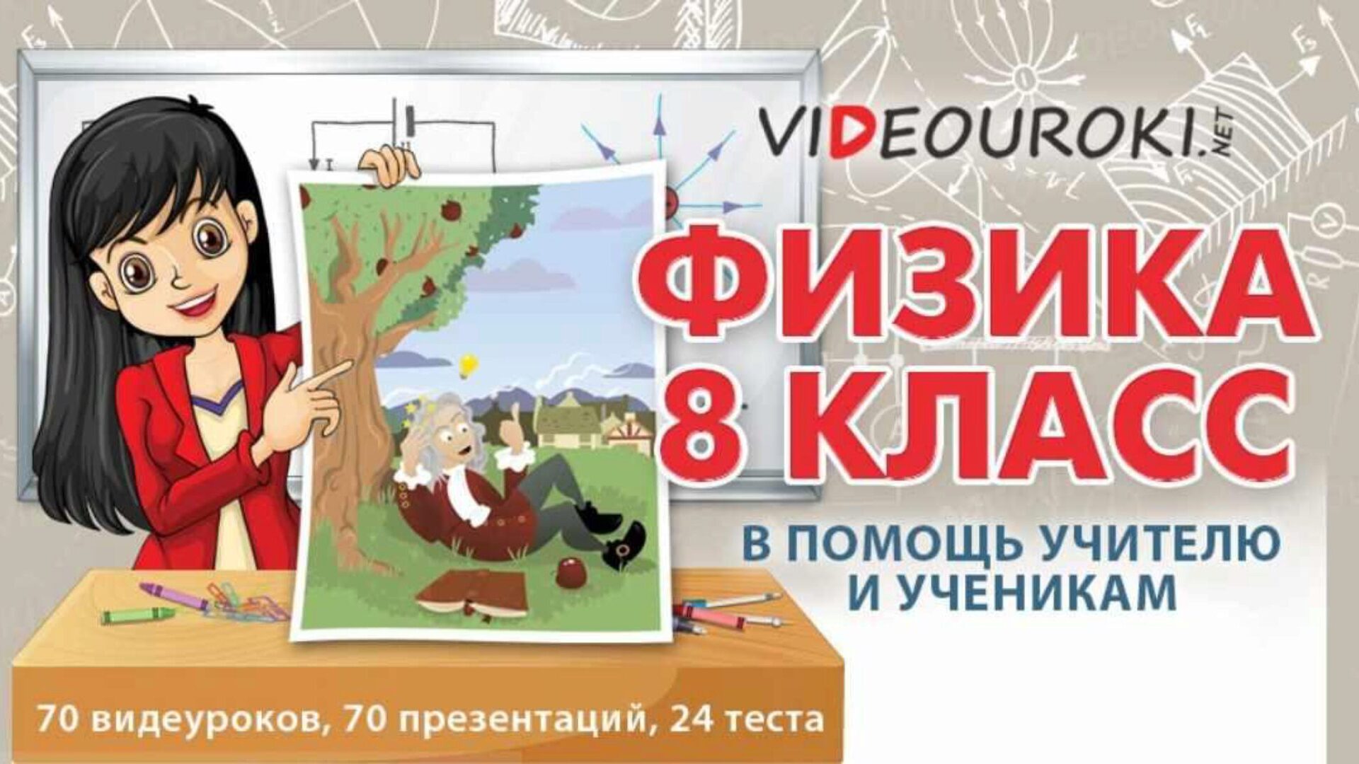 Это 70 видеоуроков, 70 презентаций и 24 теста.
