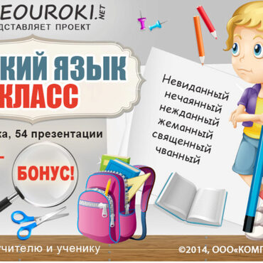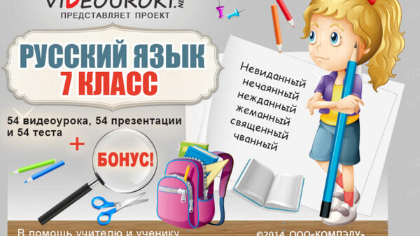 Содержит 52 видеоурока, 52 презентации и 49 тестов Разработан в помощь учителям русского языка и учащимся 8 класса. Соответствует ФГОС и сочетается с любыми УМК и программами.