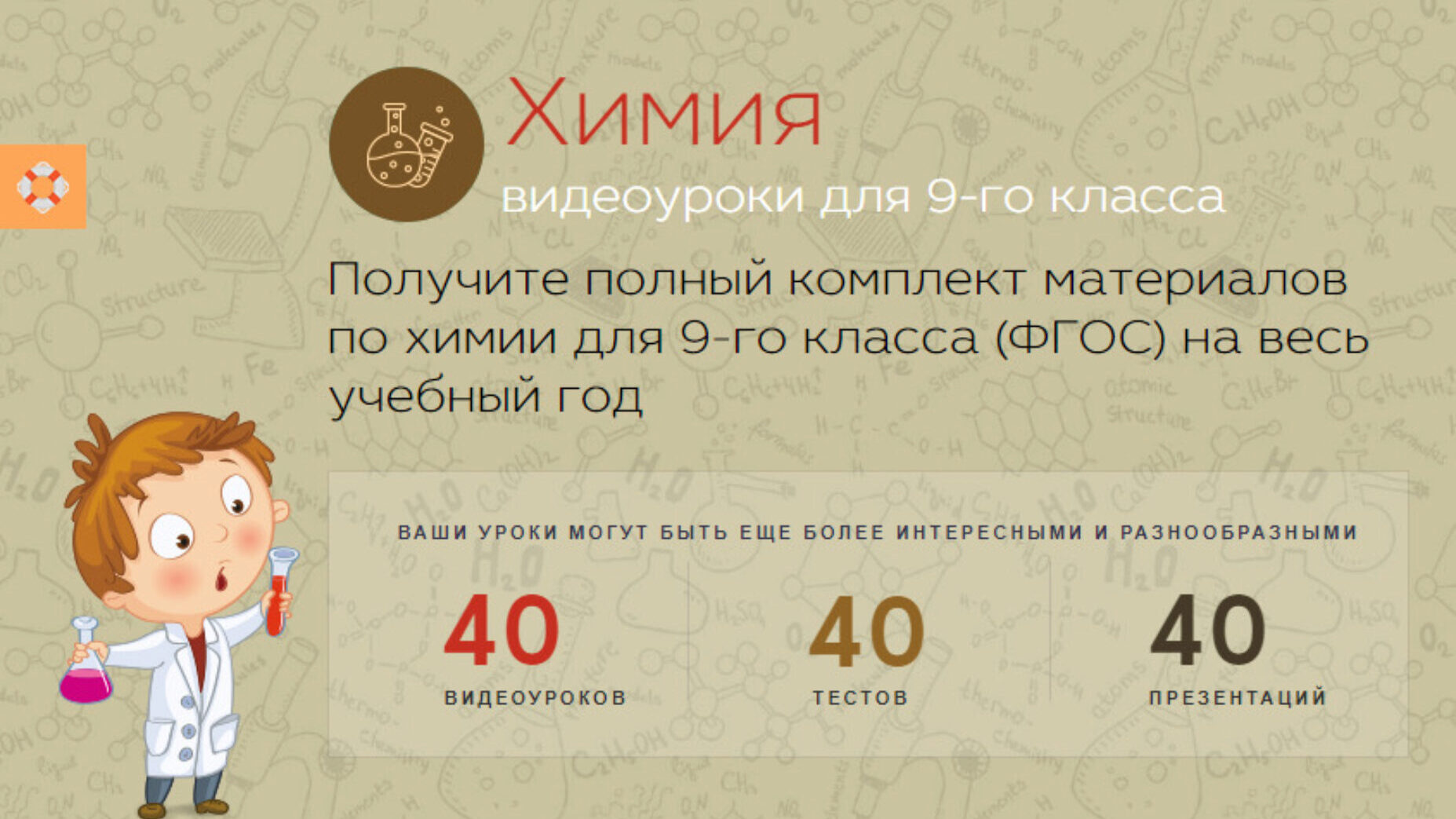 Содержит 40 видеоуроков, тестов и презентаций