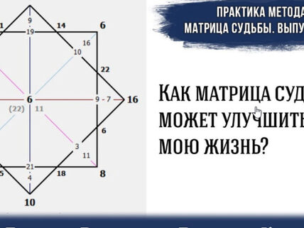 Курс Матрица Судьбы и Нумерология - I ступень Введение в метод Матрица Судьбы - философия; Знакомство с Объёмной Матрицей; Самые частые ошибки в методе при самостоятельном поиске, которые вы сможете избежать; Кармический хвост - миф или реальность; Тест - к какому миру вы относитесь; Подключение к