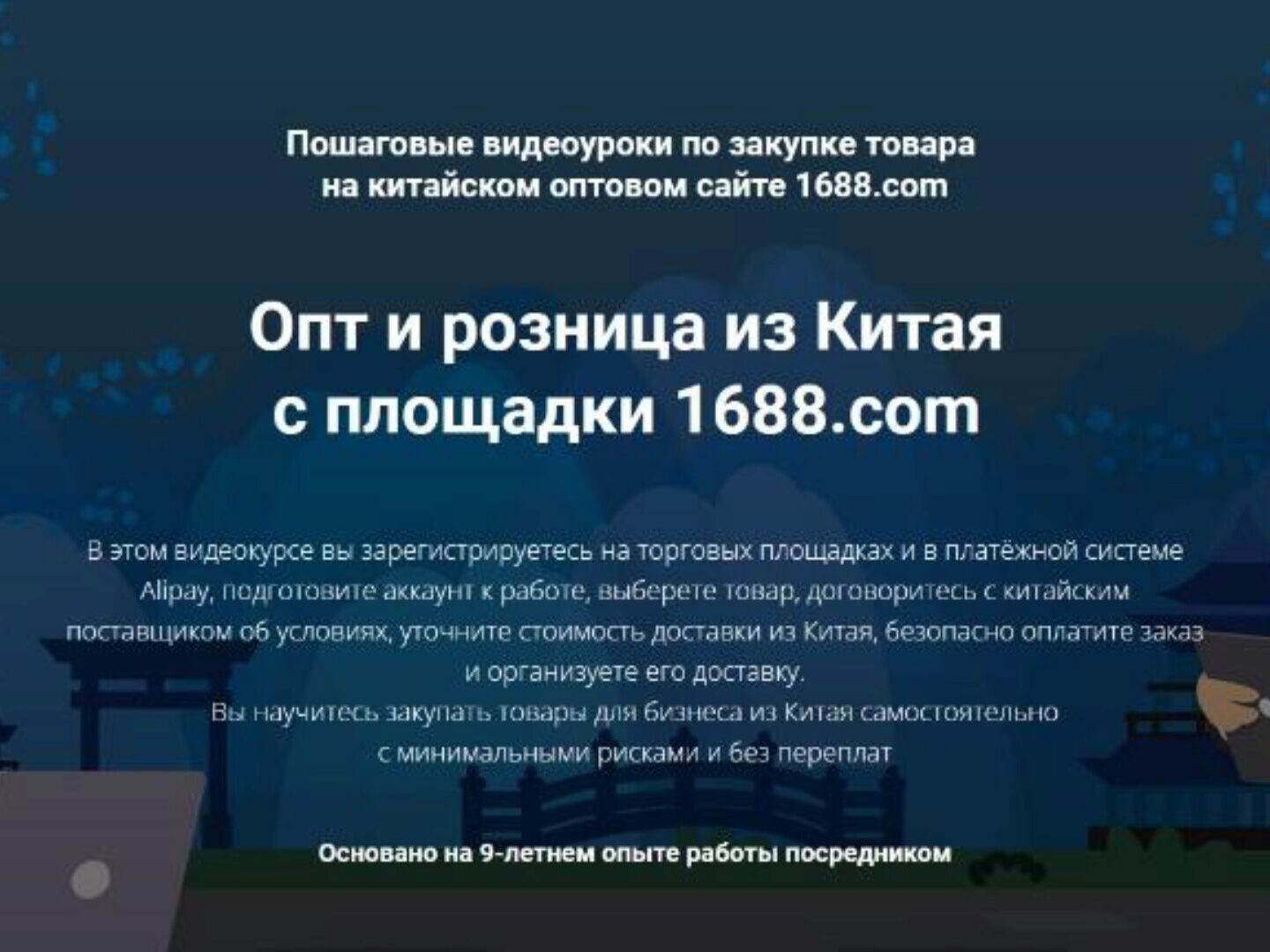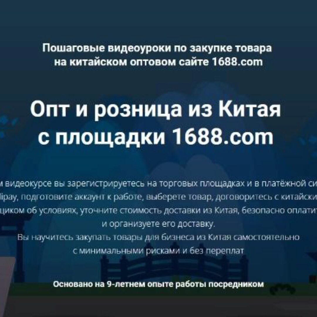 Пошаговые видеоуроки по закупке товара на китайском оптовом сайте 1688.com В этом видеокурсе вы зарегистрируетесь на торговых площадках и в платёжной системе Alipay, подготовите аккаунт к работе, выберете товар, договоритесь с китайским поставщиком об условиях, уточните стоимость доставки из Китая,