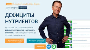 Новый онлайн курс Доктора Берга. Получите востребованную профессию! Узнайте продвинутую технологию ИГ и кето. Помогайте другим стать здоровее и худеть. Зарабатывайте от $1500 в месяц. *Можно без медицинского образования. Система профессиональных знаний о питании Пошаговая методика консультирования