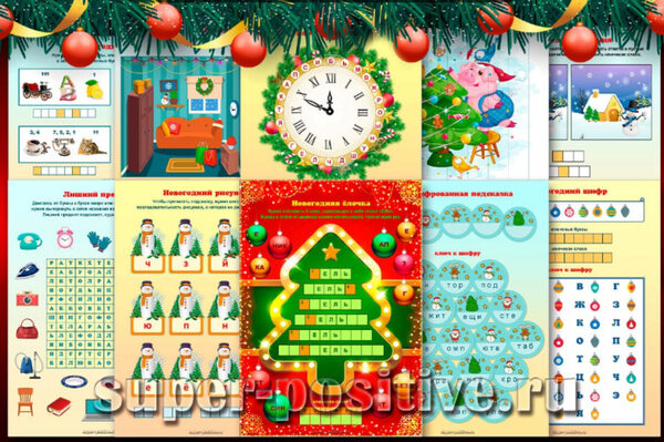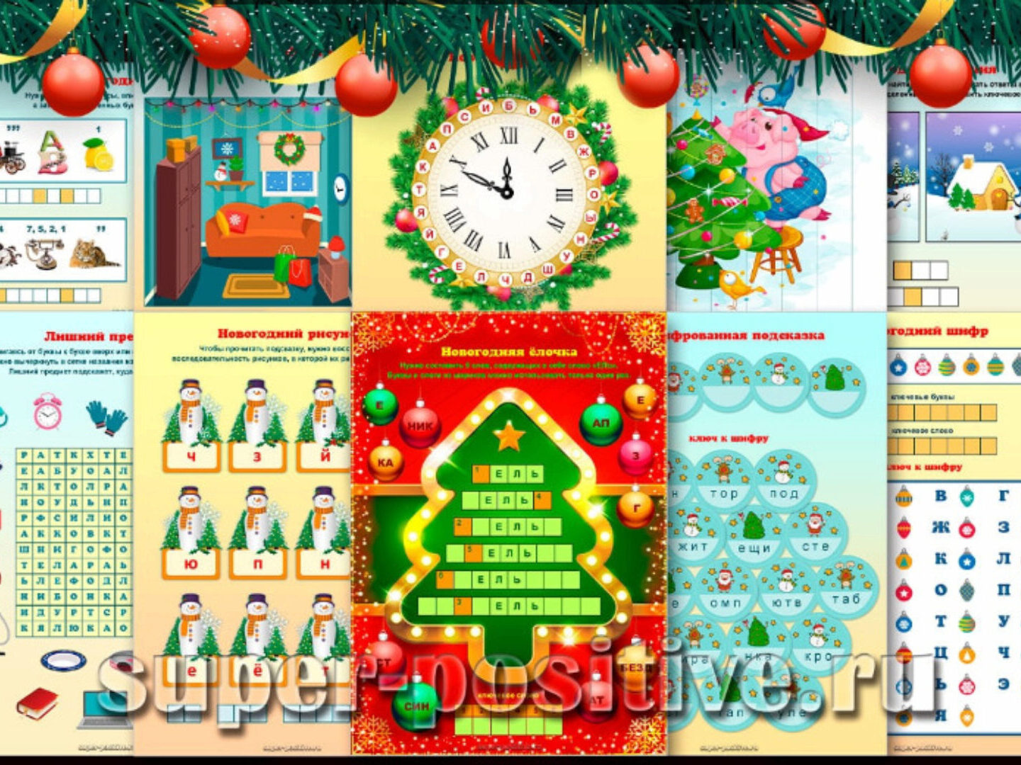 · Новогодний шифр (компьютер, телевизор). Красочный новогодний шифр. Сначала с помощью ключа нужно расшифровать буквы, а затем составить из них слово.