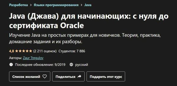 Заур Трегулов «Java (Джава) для начинающих: с нуля до сертификата Oracle»