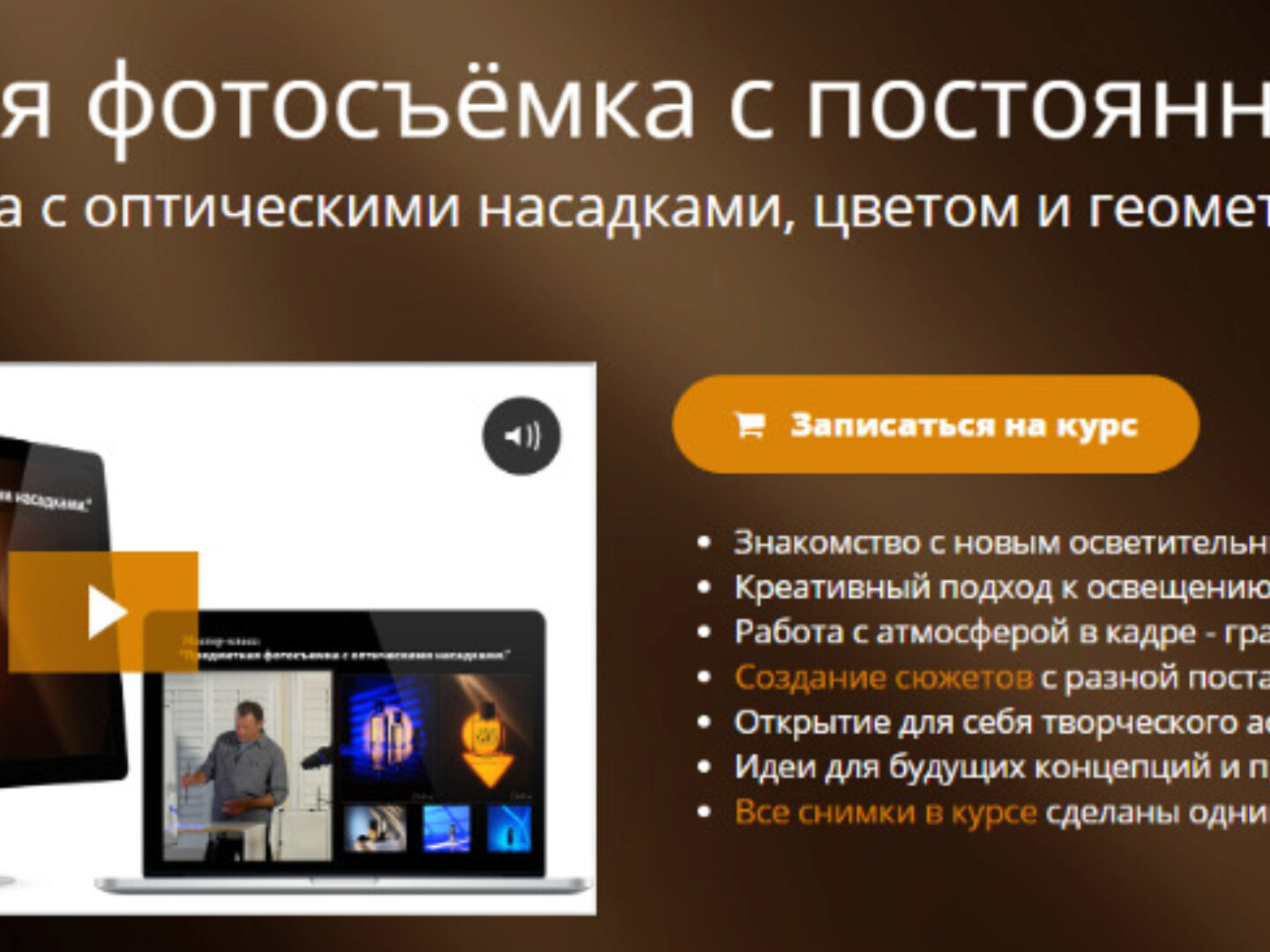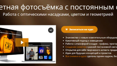 «Предметная и рекламная фотосъёмка» От основ - к мастерству в рекламной фотографии Обучение в мастер-группе онлайн: 5 недель занятий В 46 уроках (более 22-x часов видео) охватываются: Эффективная работа с постоянным, импульсным и смешанным светом Фотосъёмка простых и сложных предметов Как сделать