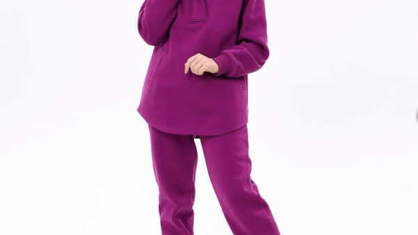 Костюм «Чёрный» Толстовка большого объёма, прямого силуэта. По центру переда расположен вертикальный накладной шов с необработанным срезом. Линия плеча спущена, длинный рукав рубашечного покроя. По низу рукавов - притачные манжеты. Вырез горловины округлой формы, обработан притачной обтачкой. По