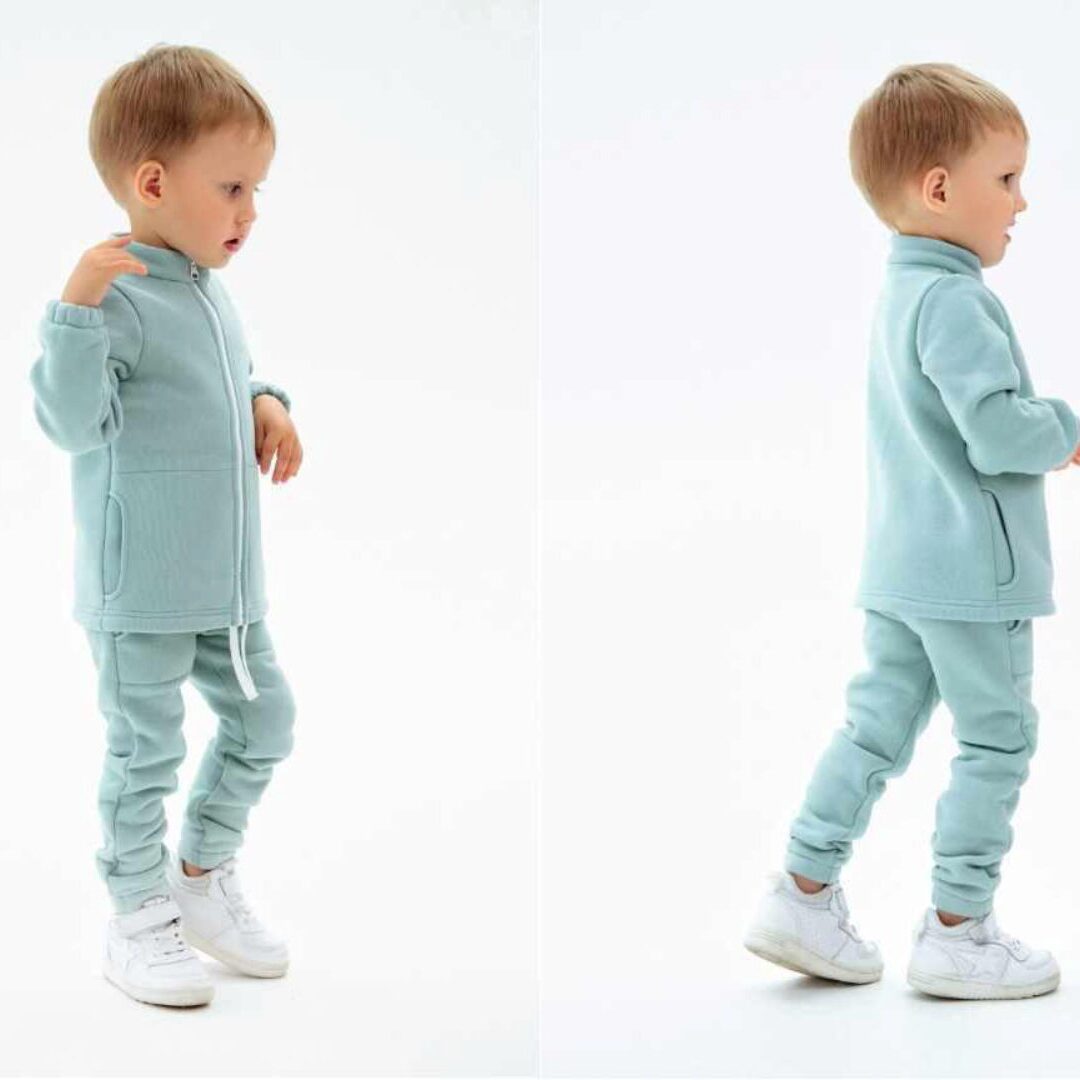 Костюм Весна. Размеры 80-164 Свитшот большого объема, прямого силуэта. Линия плеча спущена, рукав рубашечного покроя. По низу рукава- сборка, срез низа рукава обработан притачной манжетой. Горловина обработана обтачкой. По низу изделия- притачной пояс. Брюки умеренного объема. На передник
