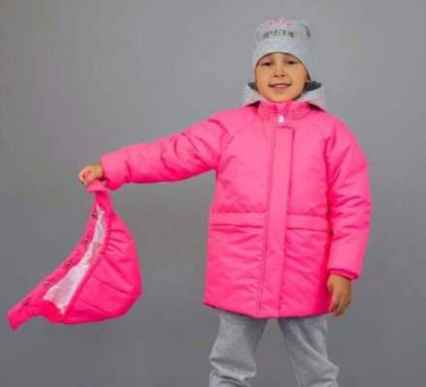Куртка большого объёма, прямого силуэта, с капюшоном. Центральная застёжка на разъёмную молнию. Молния закрыта ветрозащитной планкой, застёгивающейся на ленту велкро (липучка). По переду куртки - горизонтальная декоративная складка, переходящая в цельнокроеный карман. Рукав покроя реглан. По низу рукава- резинка. Воротник- стойка. Капюшон -съёмный, со стойкой спереди и застёжкой на ленту велкро (липучка). К куртке капюшон крепиться на кнопки. По переднему срезу капюшона частично проходит резинка (с двух сторон). Ткань – мембрана.