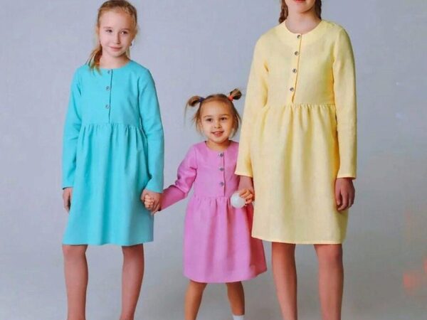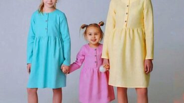 - Ткань – хлопковые ткани, держащие форму. У всех девочек, сшиты из льна