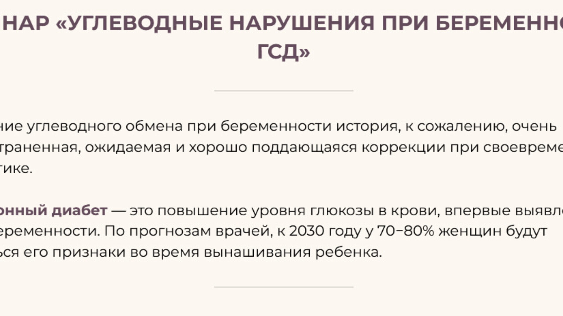 Вебинар «Углеводные нарушения при беременности. ГСД»