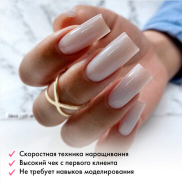 Моделирование с минимальным опилом. Не требует выравнивания после снятия форм. Идеальные ногти из любого исходника. Отказываете клиентам в наращивании? Для вас это сложно и долго? Уникальная техника наращивания ногтей при помощи верхних форм и геля побудит вас полюбить эту услугу. Только