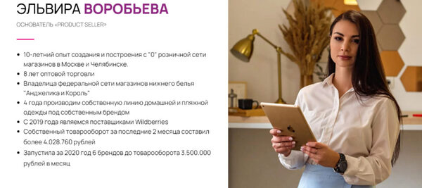 Отзывы о курсе Деньги на Wildberries. Тариф «Бизнес на Wildberries». 2021 от Эльвиры Воробьевой