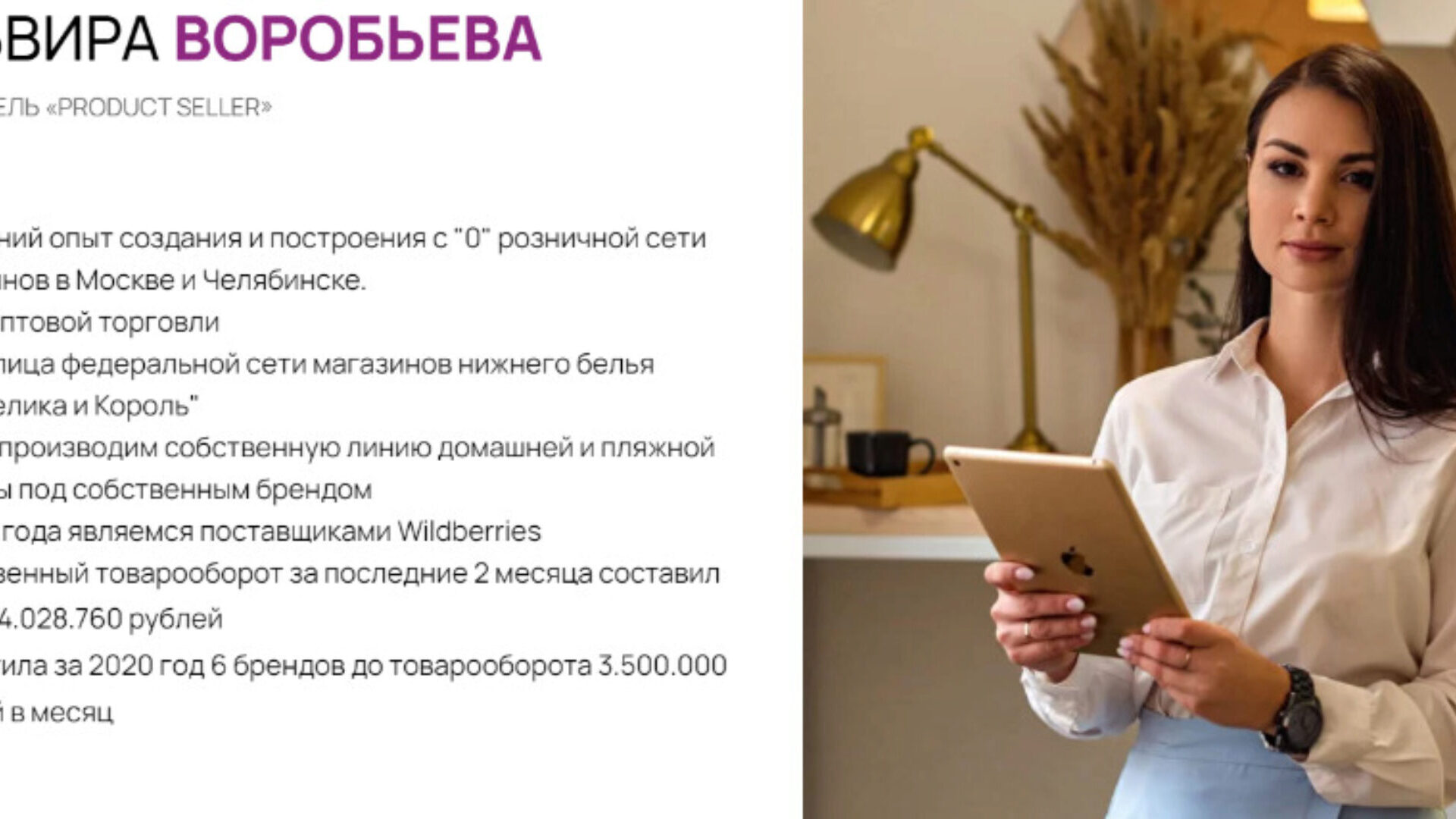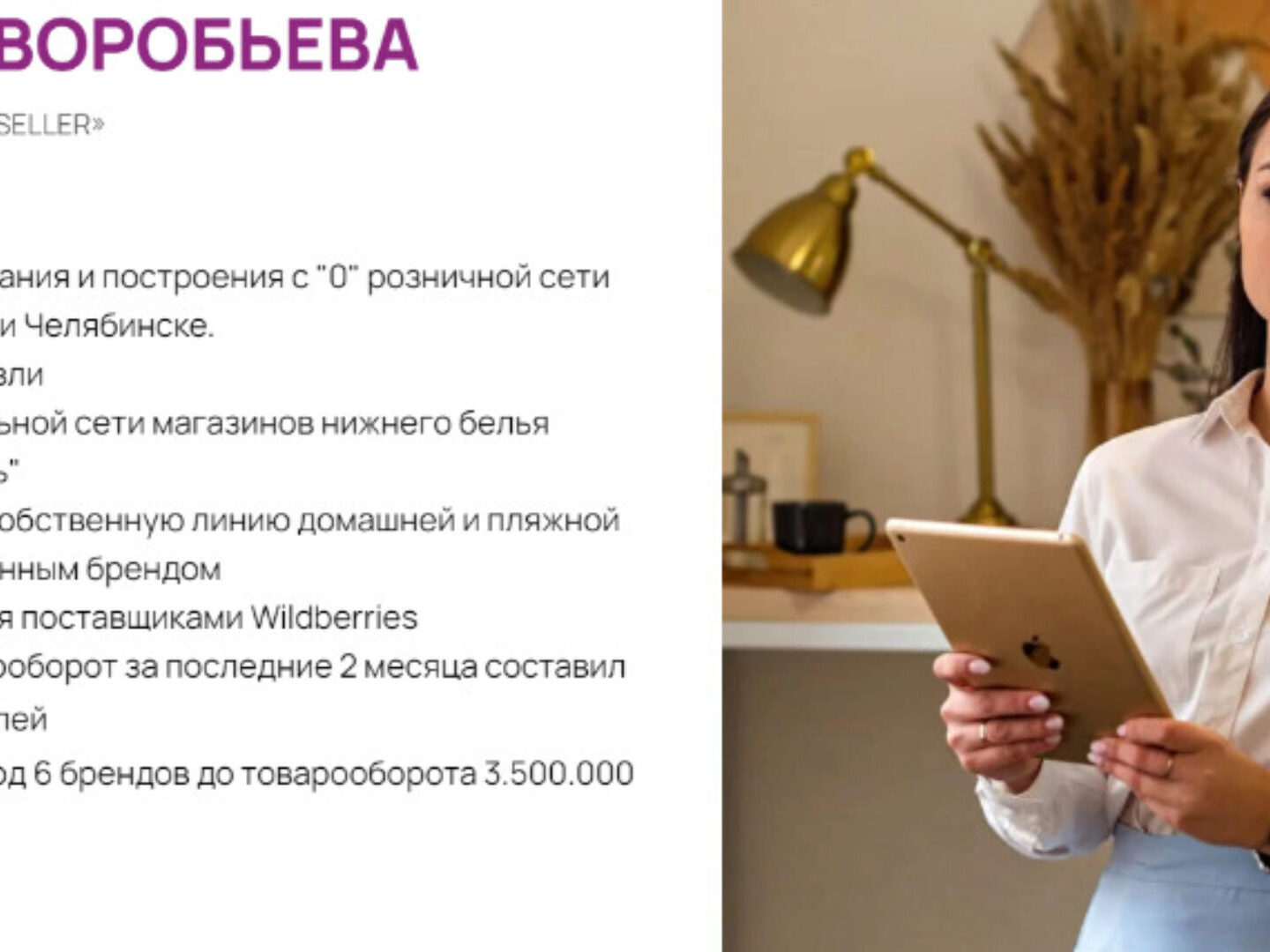 - Владельцам брендов: Вы хотите самостоятельно заводить свои продукты на маркетплейс и зарабатывать на этом от 100 000 рублей, затрачивая на управление и продажи до 2х часов в день.