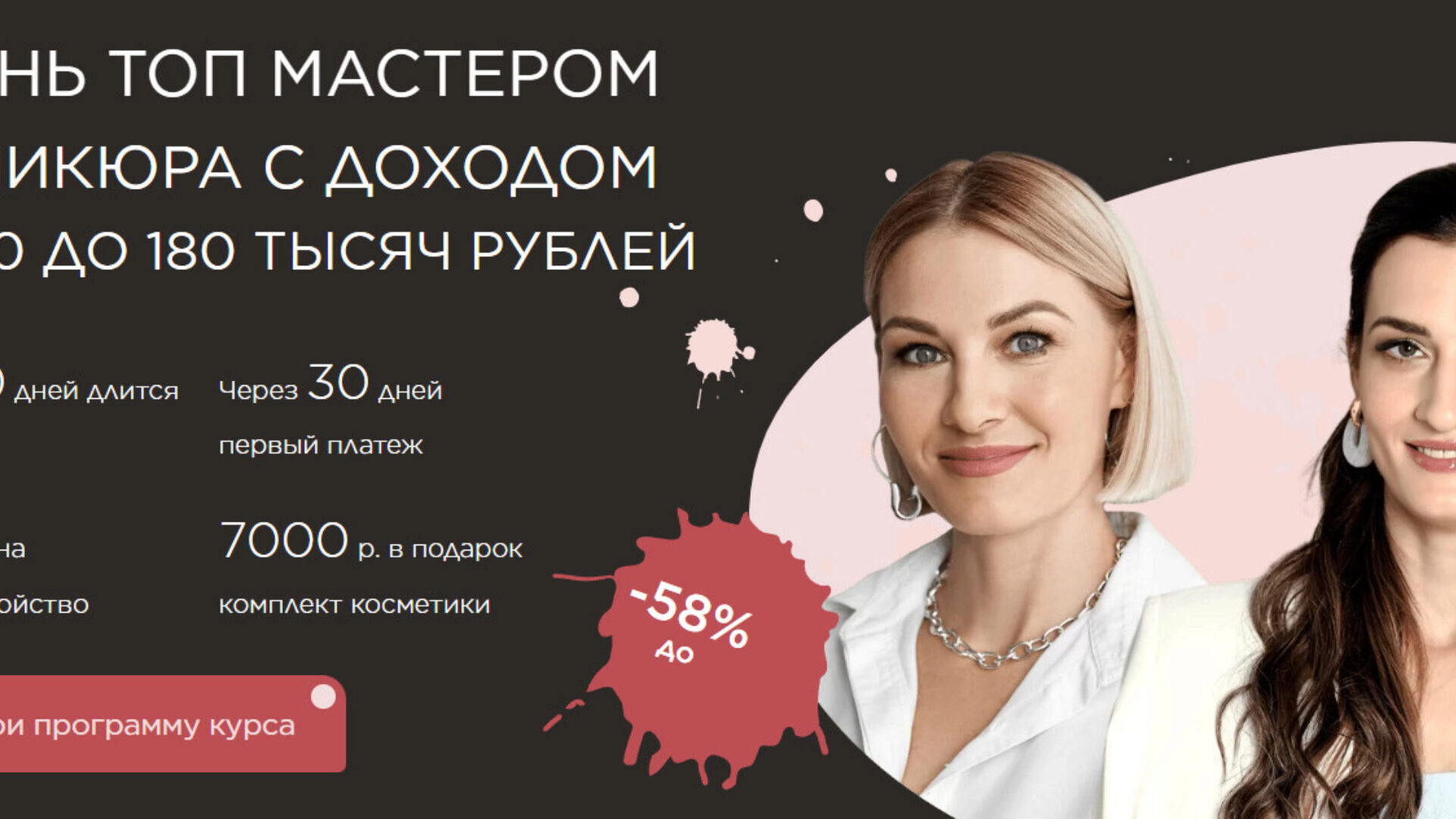 Анатомия и физиология: строение кожи/ногтя, заболеванияДезинфекция и стерилизацияКлассический/Европейский маникюрАппаратный/Комби маникюрSPA-маникюр/ПарафинотерапияМужской/детский маникюрВыравнивание и укрепление гель-лаком, запечатываниеУдлинение на формахМоделирование одной каплей БЕЗ ОПИЛАМоделирование Акригелем на формах с опиломОсновные понятия архитектурыВсе виды коррекцииИдеальные бликиВыкладной френчБазовые основы декорированияХудожественная росписьКурс по дизайну ТОП-10РептилияСложная флористикаNailCrustSpider GelПрограмма обучения включает:
