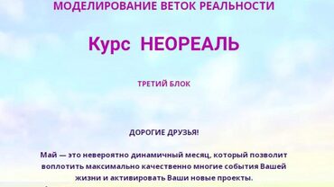 ПЕРВОЕ ЗАНЯТИЕ КУРСА ПРОШЛО 16 АПРЕЛЯ 2023 ГОДА, В ПАСХАЛЬНОЕ ВОСКРЕСЕНИЕ ЦИВИЛИЗАЦИИ В ЭТОТ ДЕНЬ ДАЛИ ОЧЕНЬ МОЩНЫЕ ЭНЕРГИИ СОНАСТРОЙКИ! СОГЛАСНО СИЛЕ И МОЩИ ДАННОГО ДНЯ! Реальность, возможности и законы бытия стремительно меняются, и вы все это замечаете. Конечная точка Курса «Неореаль» —