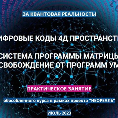 Цифровые коды 4Д пространства. Май 2023 СИСТЕМА ПРОГРАММЫ МАТРИЦЫ ОСВОБОЖДЕНИЕ ОТ ПРОГРАММ УМА Матрица формируется не на Квантовом уровне! А за пределами Квантового поля. Там, где присутствует только чистое сознание Абсолюта. На этом курсе вы узнаете: По какому механизму формируется поле матрицы?