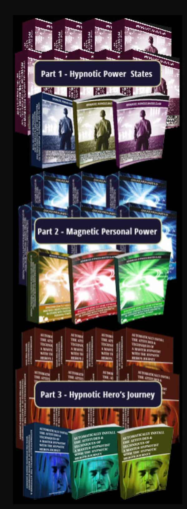 Всё начинается с программы «Гипнотический турбонаддув вашей личной силы», которая фактически состоит из трех продвинутых тренингов, а именно: