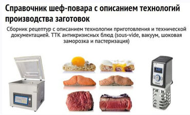 Описание: Этот новейший сборник рецептур позволит перевести все блюда предприятия в заготовки с использованием sous-vide, вакуума, пастеризации и шоковой заморозки обновить меню любого заведения из базы более чем 500 ТТК на салаты, готовые блюда, выпечку, соусы и супы, разработанные с учетом инновационных технологий. Все температурные режимы работы sous-vide (более 40 продуктов), таблицы сроков хранения продуктов, ТУ и ТИ на увеличенный срок хранения, видеопособия и фото подачи блюд.