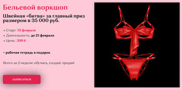 Бельевой Воркшоп 8 коротких практических уроков для результата тут и сейчас - шьём комплект белья - определяем цену этого комплекта разными методами - делаем чек ап продающей страницы - пишем посты и прогревы - делаем продающее фото - используем одну методику продаж - формируем бельевую стратегию