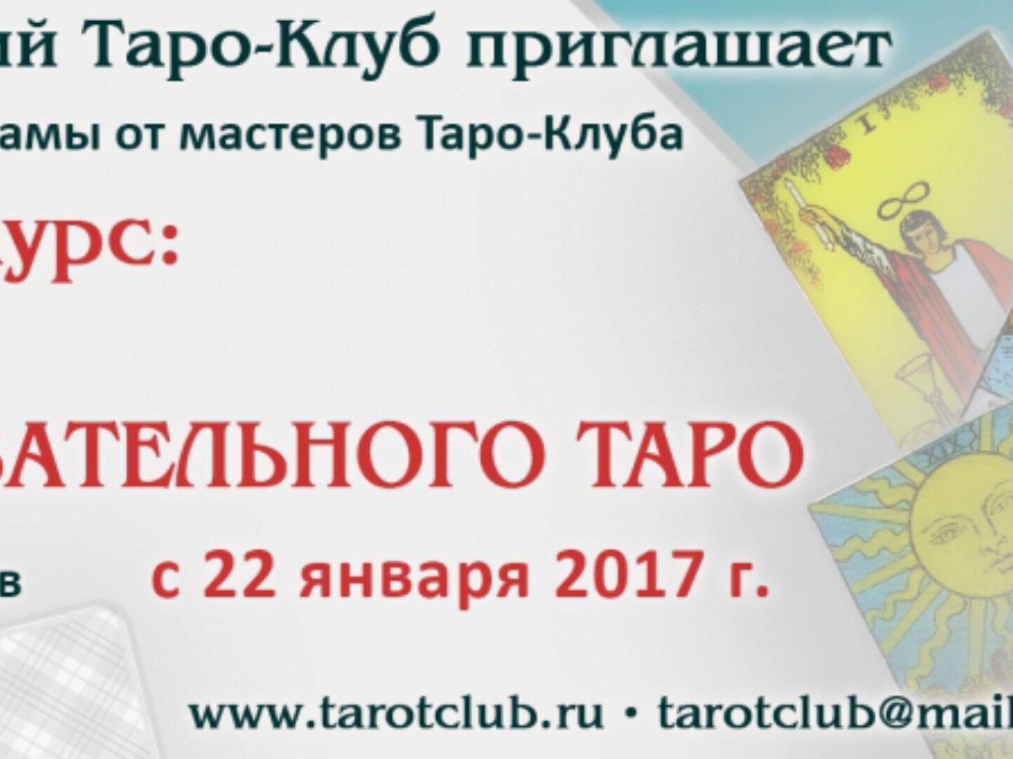 В рамках общего курса слушатели познакомятся с фундаментальными основами предсказательного Таро и с возможностями использования карт в предсказательной и консультативной практике. Основная его цель – научить слушателей использовать карты Таро для анализа и прогнозирования. Основная колода – Таро Райдера-Уэйта.