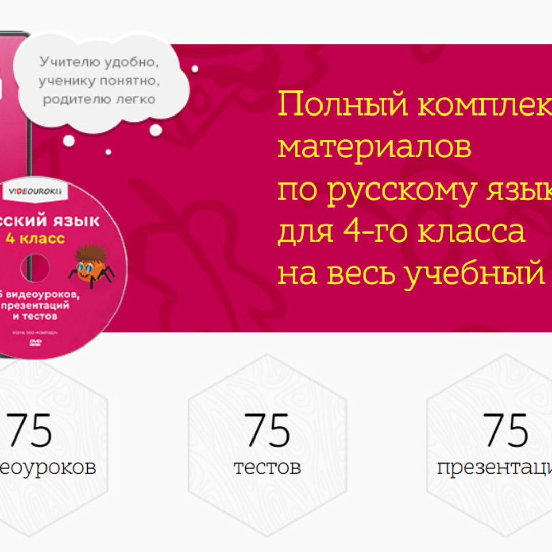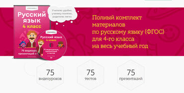 - Содержит 75 видеоуроков, 75 презентаций и 75 тестов.